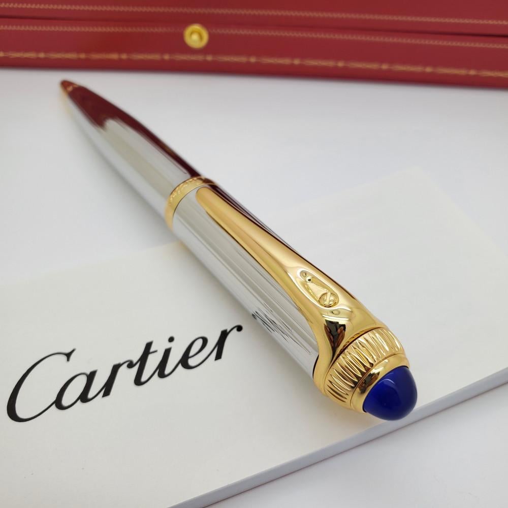 قلم كارتير رودستر فضي بذهبي فص ازرق